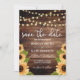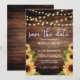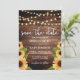 Rustikt Trä och Solros tema save the date inbjudningar i en sans serif och kalligrafisk teckensnitt för den vintage och lekfulla gula känslan av bröllopet. Fler produkter i denna kollektion.