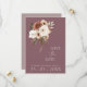 Rustisk Lila med Peach Flowers Bröllop spara datum Card. Stilt inbjudan dina gäster till din bröllopsdag med det elegant designade spara-till-datum-kortet för bröllop som innehåller en vacker blandning av persikor och oliv grönt blommor på en underbar lila. Det här spara-till-datum-kortet i bröllop har en vacker blommigt och botanisk design, med rustiska och boho-vibes, perfekt för din blommigt eller för boho-chic stil bröllop. Den minimala och moderna layouten gör att man uppmärksammar blommigten av lush-peach, elegant, som har en slående lila. Med detta spara-till-datum-kort i bröllop kan du ange tonen för en vacker bröllop-omgivning omgiven av antingen lilac eller lila bröllop deka och persiko- och krämjblommor. Ett perfekt som tillägg till ett botaniskt eller rostfritt firande.