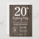 Rustiska 20:e födelsedagsinbjudan. Rustic Wood-bakgrund. Vintage Retro Birthday. Vuxen födelsedag. Manar eller Women Bday Inbjudan. 13:e 15:e 16:e 18:e 20:e 30:e 40:e 60:e 70:e 80:e 90:e 100:e, oavsett ålder.