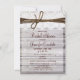Rustic Barn Wood Snöre Inbjudningskort för möhippa med en nödlidande barrträdsbakgrund. Perfekt för en land brud. Lägg till en egen möhippa. På baksidan finns också den rustiska barrträdsformen. snöre och garnet är bara utskrivna formgivningar, inte egentlig snöre eller tråd.