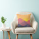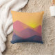 En kudde med en grafisk illustration med många bergsregioner toppar med starkt solljus i gulten bakom bergen. Tillverkad med geometriska polygonformer.Enkel minimalistisk design. Färg sträcker sig från mörk blått till ökenrött.