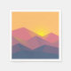 Pappra blöjor med en grafisk illustration som visar många toppar med starkt gult solljus bakom bergen. Tillverkad med geometriska polygonformer.Enkel minimalistisk design. Färg sträcker sig från mörk blått till ökenrött.