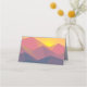 Placera kort med en grafisk illustration som visar många bergsområden toppar med starkt solljus i gulten bakom bergen. Tillverkad med geometriska polygonformer.Enkel minimalistisk design. Färg sträcker sig från mörk blått till ökenrött.