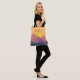 Tygväska med en grafisk illustration som visar många toppar med starkt solljus i bergsområdena bakom gulten. Tillverkad med geometriska polygonformer.Enkel minimalistisk design. Färg sträcker sig från mörk blått till ökenrött.