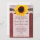 Detta meddelande om solrosblomman bröllop i land är perfekt för en bröllop eller bröllop i land stil. Bakgrunden är en nedtryckt röd ladugårdspräd med vitt täcke så att du lättare kan se skrivningen. Den övre delen av inbjudan har en ljus gult solrosa ovanpå tryckt snöre och en tryckt dukbandets design. Det ser ut som en inbjudan i lager som hålls samman av tvillingar, men det är bara en platt tryckt inbjudan till spara av dina pengar. Vem vill inte ha rabattinbjudningar, höger? Dessa roliga bröllopsinbjudningar är perfekter för landsbyggsbröllop, lador bröllop, gårdar, bröllop, cowboy bröllop, rustiska bröllop och alla som använder solblommor i sin bröllop bouquet eller sin bröllopsdekanter.