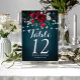 Rustiskt vinterbordsnummer i bröllop (två ansikte) med redigerbar text som innehåller mörk rödburgare och vita ponnyer med blad av säsong i gräs och blad av skinkl chic på en grönt vid midnatt med blå krita i ljus i mörk. Perfekt för din jul-/vintersemester elegant... -... -...................................................................................................................................................................................