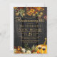 Vackra rostiga orangar och mörk burgundi höst faller blommor och pumpar gräns med golden twinkle ljus över en mörk bruna lingerbakgrund skapar en charmerande inbjudan till pakt för uppvärmning av hushåll med ett trendig handskrivet guld typografiskt manus. +++++++++ Enkel att anpassa med dina uppgifter! Lämplig för hösthöstfall, land-jordbrukshus utomhus på bakgården party eller barbecues.