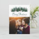 Den här snygga helgdag "God jul"-fotokortsdesignen har en vinter-scen i rustik chic från en Julgran-farm som ramar är en favoritfamilj porträtt. Anpassa med ditt val av hälsning, din familjs efternamn. En samordnande mönster av små flingor från snö på en djup grönt är baktill på kortet. Originalteckningar av Caroline Bonne Müller