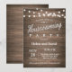 Rustiska uppvärmningspartiets inbjudan. Hemsöt hem. Sträng Ljus med rustik träbakgrund. Land Vintage Retro.