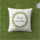 Den rustiska kransfamiljen namn God jul utanför Dekorativ kudde Nice-kudden för att dekorera din porch. Du kan lägga till din egen text och namn för att anpassa den.