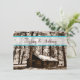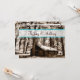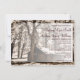 Detta fotografi av rustiska land i sepiaton har en gammal jägares logghytt i skogen sitta under långa träd i gräs. Fotot har en sepieffekt som gör att färgaden ge ett rustiskt utseende. På ena sidan av inbjudan till det rustiska landsbyggsbröllopet finns bruden och brudgummen namn över en genomskinlig rand nära överkanten som är accentuerad med tårblått. Den andra sidan av inbjudan till det rustiska bröllopet har samma sura logghytt bland träd i gräs med information om bröllopsinbjudningar. Dessa inbjudningar är perfekt för rustiska bröllop med teal och brun bröllop färger.