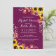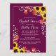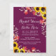 Charming och trendig, detta vackra plommon inbjudningskort för möhippan har solblomma i fullt blomning, försedd med dårande baby andedräkt och blad i höstskugga i rött, orange och brunt. Klicka för att anpassa ytterligare om du vill ändra teckensnittet stil, storlek eller färg.