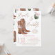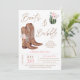 Rustic Rosa Blommigt Boots och Bubly Inbjudningskort för möhippan Boots och bubbelt inbjudningskort för möhippan med en cactus, cowgirl boots och några arrangemang för rosa blommigt. Den här duschinbjudan med möhippor och bubbelduschar innehåller också en del ej redigerbar modern calligraftext och textdelare.