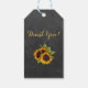 Personligens bröllopsförmån Tack för att du ger märkre med landets och brudgummens namn, datum och din text med vackra orangar av gult solblommor på mörkens grått-kritbakgrund., +++++++++++++ Passande för elegant rustik bröllop/sommarträdgård/höstens fall bakgård utomhus.