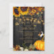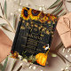 Elegant gult guld och rostig orange höst faller solblommor med torkat löv och blad, två gyllene hjärtan och en stor vattenfärgspumpa över en mörk bruna lingerbakgrund med strängar av golden twinkle ljus skapar en charmerande elegant baby-gender visa partiinbjudan med ett handskript trendig guld typografi. +++++++++ Enkel att anpassa med dina uppgifter! +++++++++ Lämpligt för traditionell höstfallsskorpa | LAND | Jordbruksföretag | Bakbak- eller flickdusch utomhus.