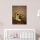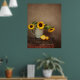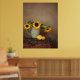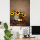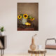 Sunnitiska tankar med en vintage som ser ut som solblommor och citroner på ett bord i köket. Toner av Vermeer och nederländare i en modern fotografisk målning av stil.
