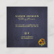 Rustiskt, modernt affärskort i stil med stor solblomma bouquet, strängar av vitt ljus och typsnitt i trendig i guld, typografi av typsnitt på en mörk vid midnattsflottans blå kritbakgrund. ++++++++++ Lämpligt för bröllop eller andra evenemangsplanerare, trädgårdsmästare, landskapskonstruktörer, florister, fotografer.