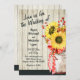 Solblommor från Rustic Land på träets bakgrund sjunker allt under ett bröllop - lägg till alla dina bröllop-uppgifter längst bak i inbjudan. -