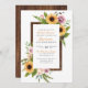 Låt oss duscha bruden till skon! Den här inbjudan är perfekt för all rustik land-möhippa. Den här utformningen har två vackra vattenfärgade buketter av solblommor, ro och gräs grenar med en ram av trä runt vackra typografi för inbjudningskort för möhippan. Inbjudan går tillbaka till en rustik lingved struktur till ge som land känner. Om du vill lägga till en egen text klickar du bara på knappen "personalize" (anpassa) och skriver in information i namnen i rutorna.