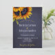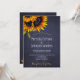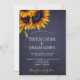 Elegant chic inbjudan till sommarhöst eller hösthöstbröllop snyggt på mörken midnattskartong med vackra solblommor bouquet och faux guld typografi. +++++++++++++++++++++* Inbjudan är lämplig för elegant sommar- eller höstfall vid land kväll party eller nattträdgårdsbakgård bröllop.