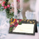 Elegant bordsnummer vid land blommigt bröllop med solblommor från gult guld och burgundy ro bouquets över en mörk brunlingbakgrund med strängen ljus. Idealisk för sommarträdgården utomhus eller hösten faller den ryska gården bröllop.
