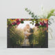 Rustiska solblommor och ro buketter med grönt lövning och löv med sträng ljus på mörk bruna lada förlovning foto elegant bröllop spara datumet med ett chic guld typografiskt skript. ++++++++ Anpassa med namn, foto och text! ++++++++ Lämpligt för blommigt bröllop från sommar- eller höstträdgårdsodling vid land.