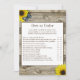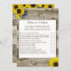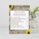Rustiskt, vävt trä med gult solblommor och blå fjäril. Blått och vitt flaska- typografi "Baby" på baksidan av inbjudan. Mallar skapat åt dig. Det här är ett Över- eller Under babyduschspel. #zazzlemade, #rustic, #sunblommor, #bottlecaps, #Landsliv