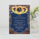 Dessa marinblåa bröllopsinbjudningar är idealiska för en rustisk bröllopsfest som inspireras av solblommor.