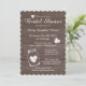 Elegant brun och vit glasmynning burk inbjudningskort för möhippa. Anpassningsbar utomhus/lada bröllopsfest inbjudan med söta flätade hjärtan. Anpassa utskärningsformen för scallop. Vackra snyggtar, manusskrivstil med vintage kärlek symboler. Rustic land chic-tema med bakgrund av trämönnspaneler. Träets mönster-design.