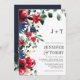 Rustiska vinterrödblåa blommigten bröllop inbjudningar