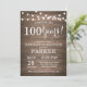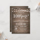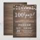 Rustiska 100:e födelsedagsinbjudningar, träbakgrund med String Ljus. 13:e 15:e 16:e 18:e 20:e 30:e 40:e 60:e 70:e 80:e 90:e 100:e, oavsett ålder. Vuxen födelsedag. Födelsedagsfest för kvinnor eller män.