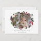 Elegantens botaniska helgdagskort har ett vågrät- eller landskapsinriktat foto som omges av en ovallig krans av lush rustic bladage och blommor. Anpassa med din anpassningsbar hälsning och namn under, visas med "Season's Greetings".