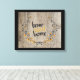 Bakgrund till viltlevande trä, en andedräkt av blommor från land och "hem sött hem" med modernt tvåtonsteckensnitt ge det här charmerande tände kanvastrycket ett modernt men rustiskt utseende.
