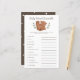 Kortet för babydusch i baby ord, som illustrerar ett unge. Listan över ord på detta kort gäller spädbarn, och den är uppdelad. Gästerna kommer att tävla, som kan lösa upp alla först! SVAR NYCKEL: 1. bilsäte 2. mjölk 3. lekplats 4. nappar 5. blöjor 6. rockstol 7. dagis 8. baby monitor 9. svalg 10. formel 11. gummiducky 12. barnvagn.