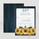 Skicka gästerna ett enkelt och elegant Rustic Blue Solros-Bröllop OSA-kort med din inbjudan. Svarskortet har en rustik bakgrund av trä med en elegant av solblommor. Anpassa med svarsdatum och menyval. Ytterligare bröllop-förråd finns även med den här utformningen.
