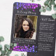 Rustic Chalkboard Eucalyptus Sympathy Funeral Prayer Cards. Det här eleganterna minneskortet för böner har en blå lila- och rosa eucalyptus grey på chalkboard skiate design. "In Loving Memory" Anpassa det här minneskortet för begravning med dina nära foto, namn & data och känslor. Tillbaka ~ 'Efterglöd' Dikt, som kan vara personlig, var snäll och nå ut om du vill ha en design med en specifik dikt annan än. Det här minneskortet kommer att vara en välkänd keepé, för begravningstjänster och firande i livet. COPYRIGHT © 2020 Judy Burrows, Black Hund Art - Med alla Höger reserverade. Rustiskt botaniskt symtomatiskt bölkort