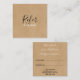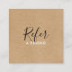 Enkel elegant remitteringskort för rustik kraft med namnteckning manustypografi på en rustisk kraftbakgrund skapar det ett perfekt affärskort för ett stort antal yrken, inklusive en bröllopsfixaren, evenemangsplanerare, florist, spa, salonhår och smink, skönhetskonsult, skönhetsläkare eller andra skönhetskonsulter. Lägg till kontaktuppgifter för fullt på den omvända uppsättningen i modern typografi. Designad av Thisisnotme©
