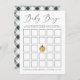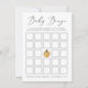 Bingo-spelkort för spädbarnsdusch med "Baby Bingo" överst i ett svart kalligrafiskt skript och en orange som pumpas som mittbingoplats. Anpassa med mamma till namn och babyduschdatum längs grund. Utformningen koordinerar med vår Rustic Play Pumpkin-samling.