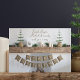 En skandinavisk inspirerad inomhusscen med en rustik kamera med ljus, gräs-koner, stockar, en lantern och liten fir träd med utrymme för att lägga till hälsning och adress på andra sidan
