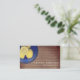 Ett affärskort inom livsmedelsindustrin med en träinspirerad bakgrund på framsidan och baksidan. Framsidan har en bild av citroner i en blå skål. Anpassa texten på framsidan och baksidan med ditt namn och din kontaktinformation.