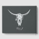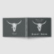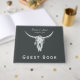 Rustic charcol grått white bull skalle land western cowboybröllopsgäst bok. Vintagens lantgård inspirerade. Gamla vilda western antika stil. Enkel, coola, trendig, modern djurdesign inom jordbruket. Anpassa skriptet. Upphovsrätt Marg Seregelyi Fotography.