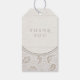 Elegantens neutralt vit på den vita vintagen blommigt snöre och rostfritt träkorn med pars monogram och tack för märkre i bröllop, underbar för det orustiska bröllop, landsbyggsbröllop party hela året, särskilt på vintern. Se alla matchande delar i samlingen nedan.