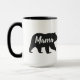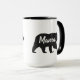Det roliga temaféet mugg för mammor har en svart björn på vit bakgrund med "Mamma" i ord i modern tryckt typografi över mitten. Gör en unik gåva till Mors dag eller något speciellt tillfälle. Designad av konstnären Susan Coffey och Tim Coffey.