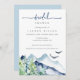 Detta vackra Inbjudningskort för möhippan visar en avslappnad vattenfärgsdesign av ett skogs- och bergslandskap, med smakliga och enkla detaljer och rustik kalligrafitext. Den omvända sidan skryter med en serendammig blå färg. Med en tidlös appell än med contemporary, fångar inbjudan perfekt kärnan i din äventyrliga vildmark bröllop.