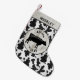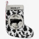 Rustic Farmhouse ser ut som julstrumpor med en korvsilhuett på träkornet, med en vit och svart kornig cowhid. Lägg till ditt namn högst upp med mallen. Perfekt för fläkt i vintagens lantbrukshus stil och boskapsuppfödare.
