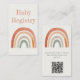 registerinformationen för baby på ett utmärkt sätt med den här adoröst roliga infogningen, som innehåller en handmålad stil terracotta och pastellregnbåge i mjuka vattenfärgtoner. Den minimalistiska, moderna layouten kombineras med ett typsnitt som inspirerats av vintagen och som ger en roligt och en trevlig beröring. Gäster kan enkelt söka igenom QR-koden för att få åtkomst till ditt register, skapar perfekten för babyduschar eller meddelanden. De varma jordtonerna och den naturliga paletten färg samordnar sig utan problem med teman om boho, neutralt eller party och inbjudningar och snyggtar som behållor firande både organiserat och minnesvärt.