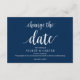 Det här är Rustic Navy Blue Script, Bröllop-kort för senareläggning av händelser, årsjubileum firande-kort för senarelagt kort, party-kort för senareläggning. (Ändra datum) Du kan ändra teckensnittet och lägga till färgen i matchande teckensnitt / text. #TeeshaDerrick