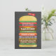 Unik staplad hamburger med lök, pickle, sallat, hett, hund, ost, senap, ketchup, på en krita. En gingham-röd picnic-mönster är på inbjudan. Din gäst kommer att skicka den här unika inbjudan till kärlek. Anpassa med din egen text. Kolla min butik för mer sånt här. Ursprunglig illustration efter pj_design. Skicka e-post till mig om du behöver hjälp. Du kan göra detta till ett större kort genom att anpassa det och klicka på de papprare alternativen.