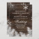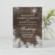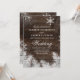En rustik, brun vintage land-inbjudan till träbröllop med snö, snöflake och gräs grenar med ett elegant skript. Perfekt för jultoma, vintersäsong bröllop, utomhus, ladugård, gård bröllop