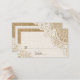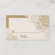 Elegant vit snöre på säteskortet för shabby chic bröllop i överlappande pärmar med vitt snöre på naturlig brännpunkt eller hessisk som täcker två hörn av en vit rektangel med beige burlap gräns. Text i brunt. Observera att snöre och överlappningar är "tryckta på" och inte äkta tyg. Denna elegant är en sofistikerad och romantisk shabby chic-utformning med ett rostfritt innersta väsen en del av bröllop och är perfekt för en land chic eller western vår, sommar eller fall/höst bröllop med en neutralt-palett.